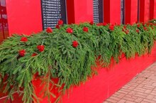 Сотрудники Центра детского творчества "Радуга" к празднованию Дня Победы еловым лапником украсили Стену Памяти у Монумента Победы.