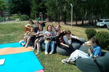 В День защиты детей в ходе фестиваля библиотек любимую песню можно было спеть с воспитанниками объединения "Город песен" под руководством педагога дополнительного образования Сорокина Алексея Витальевича.