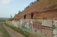 Коллектив Центра детского творчества "Радуга" частично привел в порядок Стену Памяти на Майской Горе.