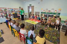 Воспитанники подготовительной группы детского сада "Огонёк" приняли участие в викторине "Знатоки дорожного движения". Провела викторину педагог-организатор Центра детского творчества "Радуга" Давлетшина Юлия Николаевна. Две команды - "Светофор" и "Дорожные знаки" - ринулись в бой за право быть Победителем.