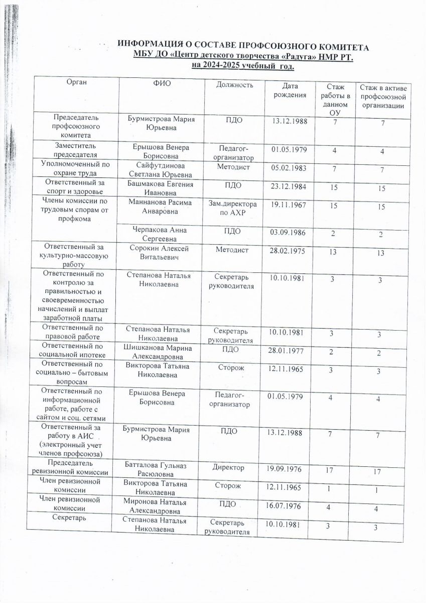 Состав профсоюзного комитета 2024-2025 учебный год