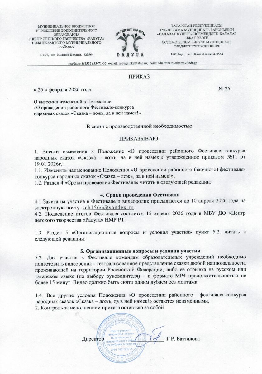 Муниципальное бюджетное учреждение дополнительного образования «Центр детского творчества «Радуга» Нижнекамского муниципального района Республики Татарстан