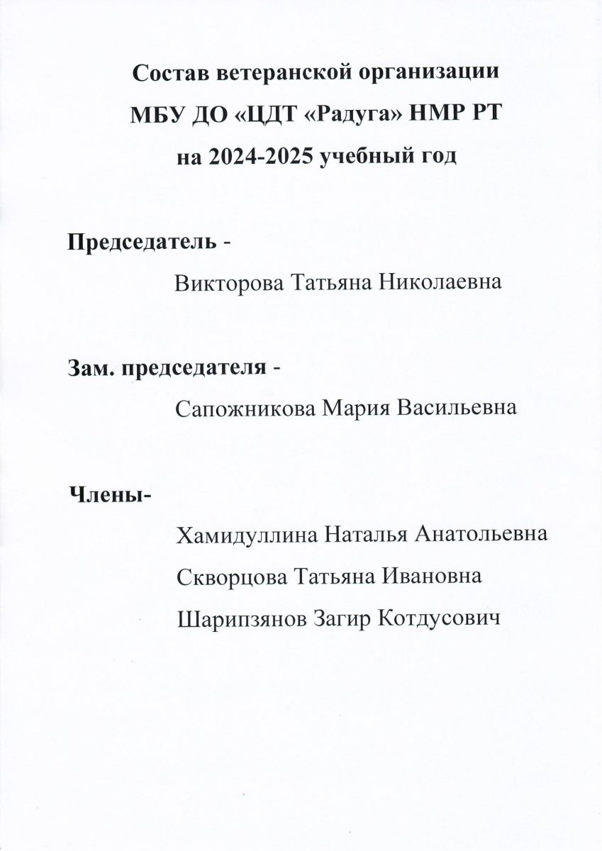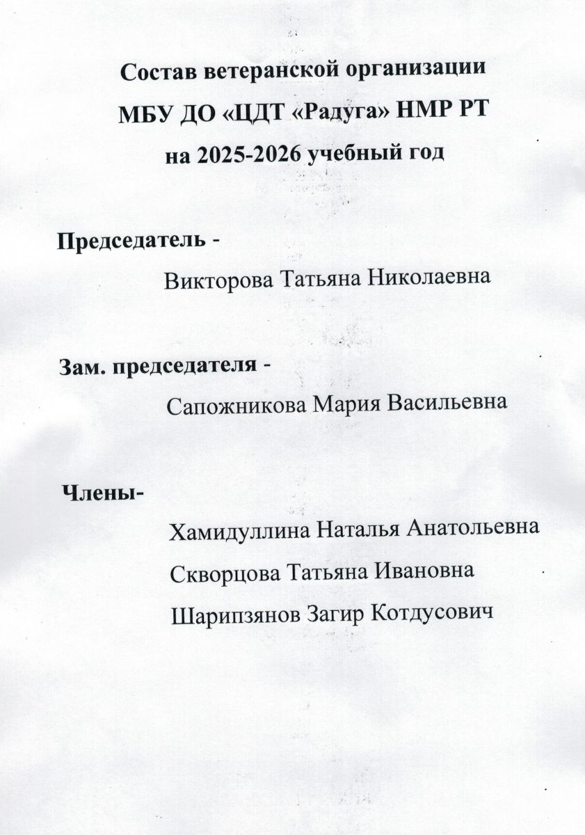 Состав ветеранской организации МБУ ДО ЦДТ "Радуга" на 2025-2026 учебный год