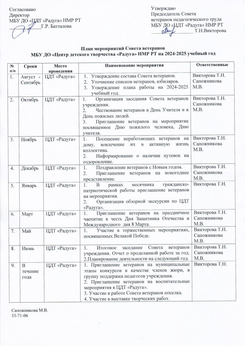 План мероприятий Совета ветеранов на 2024-2025 учебный год