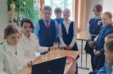 В ходе работы над исследовательским проектом по биологии Максимчик Диана и Роднина Анастасия провели мастер-класс для пятиклассников, на котором показали работу мультидатчика и подсоединенного к нему датчика кислотности рН. Они показали на компьютере результаты определения кислотности молока в виде графика и пояснили младшим ребятам, как определить искомый результат...руководитель проекта Баранова Н.И.
