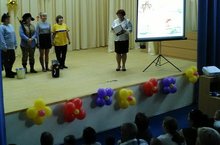 Особое внимание было уделено первоклассникам, для которых начинается совершенно новая жизнь, поэтому все поздравления и подарки были для них. Поддержать своих младших товарищей вышли выпускники. Они поздравили ребятишек и вручили им воздушные шары с пожеланиями.