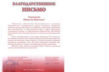На семинаре Наталии Ивановне в честь «Дня школьного библиотекаря» было вручено Благодарственное письмо Управления образования ИК НМР РТ за добросовестный труд в сфере образования.