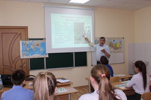 Учитель географии Тактаров Р.М. провел тематический урок «Гагаринский урок «Космос это мы». Урок сопровождался показом видеосюжета «Полет Гагарина».
