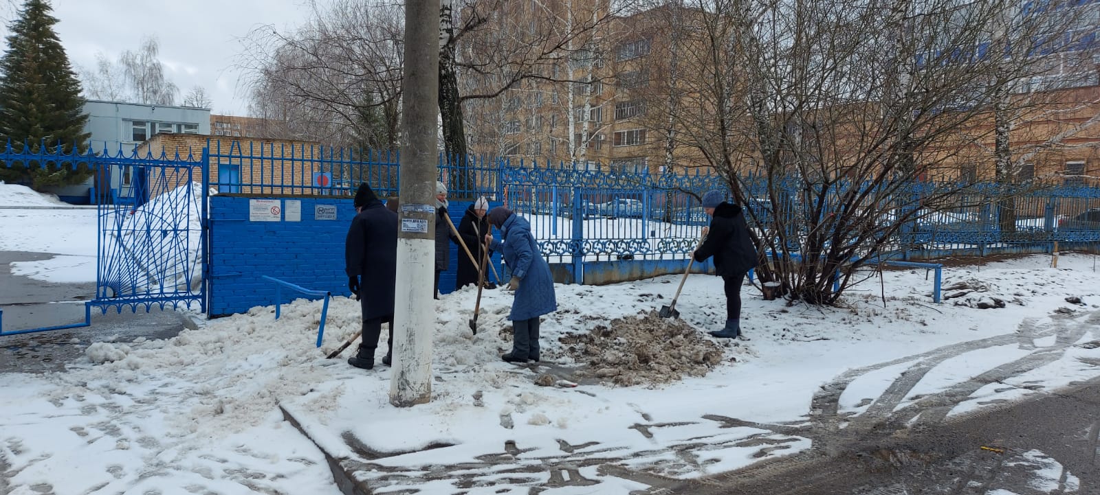 Сегодня прошёл первый общегородской весенний субботник. Коллектив нашего учреждения принял активное участие в уборке территории и прилегающих участков по периметру НШДС: разрыхляли снег, очищали от наледи пешеходные дорожки.