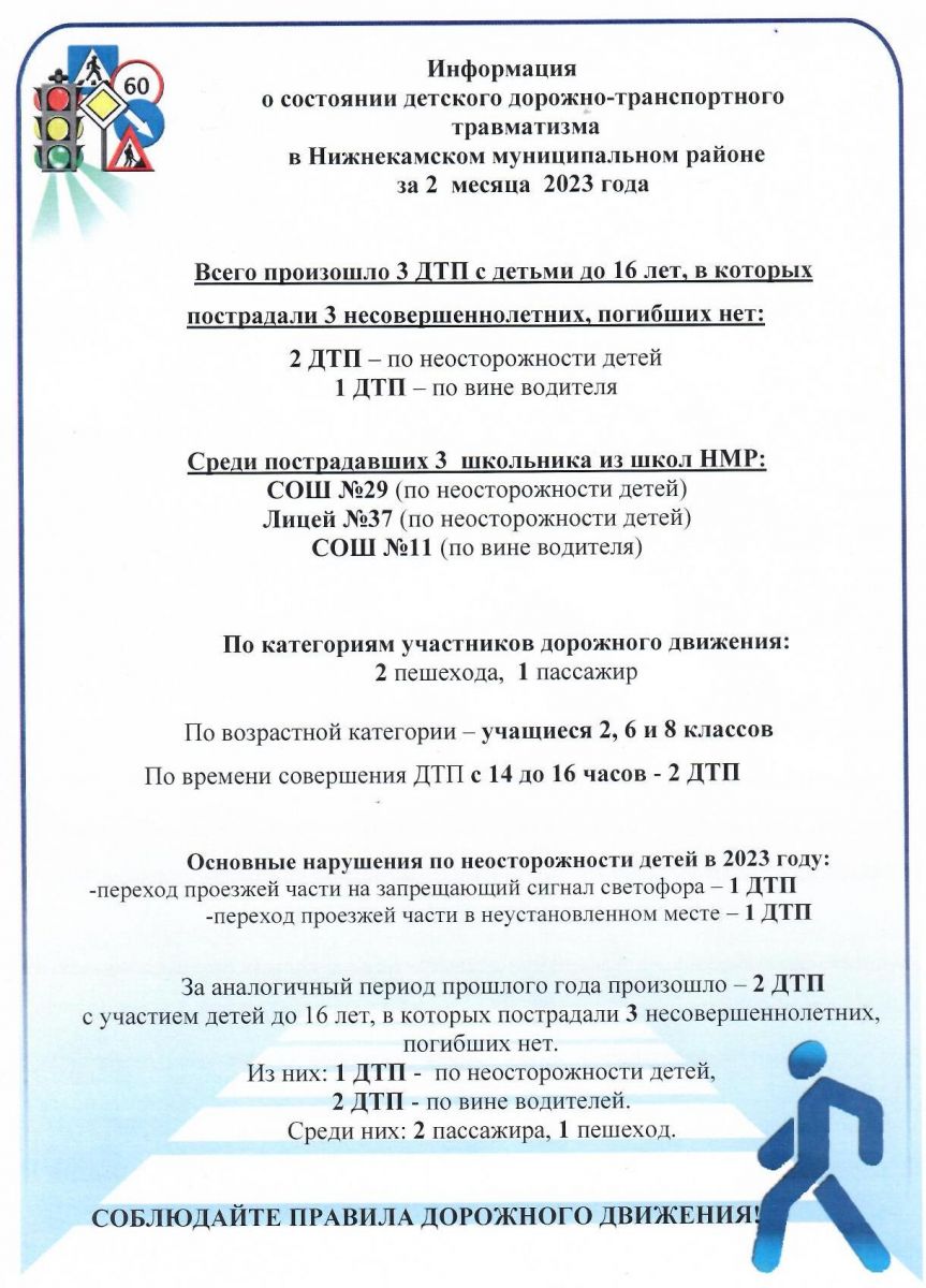 Информация о состоянии детского дорожно-транспортного травматизма в Нижнекамском муниципальном районе за 2 месяца 2023 года