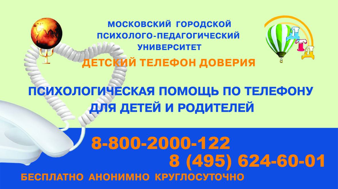 Номер Детского телефона доверия МГППУ в Москве: 8 (495) 624-6001.Горячая линия кризисной психологической помощи Министерства Просвещения РФ: 8 (800) 600-31-14