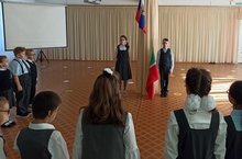Учебная неделя 5 сентября началась с церемонии поднятия государственного и республиканского флагов, исполнения гимнов России и Татарстана. Правом поднять флаг удостоились два лучших ученика школы: ученица 4д класса Гульназ и ученик 4 класса Архипов Кирилл.