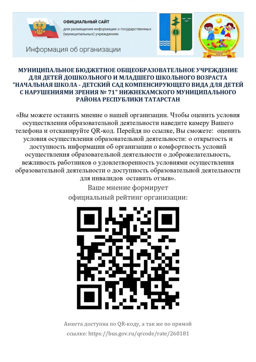 Муниципальное бюджетное общеобразовательное учреждение для детей дошкольного и младшего школьного возраста «Начальная школа-детский сад компенсирующего вида для детей с нарушениями зрения №71» Нижнекамского муниципального района Республики Татарстан