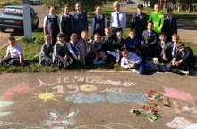 Образовательное событие, посвящённое жизни и творчеству Л.Н. Толстого, прошедшее в школе 11 сентября 2018г., вдохновило учеников 4В класса на создание импровизированной поздравительной открытки в адрес великого русского писателя прямо на асфальте у крыльца школы. Радостно осознавать, что дети, прочувствовав глубину и масштаб прошедших мероприятий, оставили в их сердцах такой след!