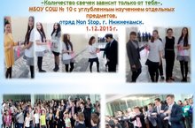 В рамках реализации республиканского антинаркотического проекта Самостоятельные дети в МБОУ СОШ № 10 с углубленным изучением отдельных предметов отрядом НОН-СТОП 1.12.2015 года было проведено плановое мероприятие «Количество свечек зависит только от тебя».