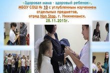 Школьный отряд СМС-детей НОН-СТОП 28 ноября 2015 года провел акцию «Здоровая мама – здоровый ребенок». Данное мероприятие было проведено совместно с ДОО «Галактика» во время праздничного концерта ко Дню Матери, который прошел в актовом зале МБОУ “СОШ №10”.