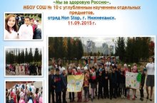 В рамках муниципальной акции «Праздник трезвости» 11 сентября 2015 года участники республиканского антинаркотического проекта Самостоятельные Дети, школьный отряд НОН-СТОП, провели на школьном дворе флешмоб для учеников младших классов.
