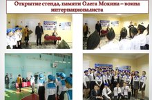 19 февраля в память о выпускнике школы №10 Олега Мокина был открыт стенд. На линейке присутствовала мама Олега – Шарапова Инесса Александровна и учащиеся 5-х классов. Инесса Александровна рассказала о своем сыне, каким он был добрым, отзывчивым, ответственным, смелым юношей.