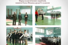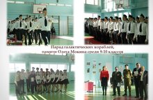 17 февраля состоялся парад галактических кораблей памяти Олега Мокина среди 8-х классов. Почетными гостями на смотре были депутат городского совета Гафиятов Ильгиз Зиниятуллович, ветеран войны в Афганистане Гилязов Ильгиз Гареевич, преподаватель военной подготовки КАИ-ветеран войны в Чечне Атоджанов Тимур Алмазович и почетный житель г.Нижнекамск Закирова Васима Сабировна. С приветственным словом выступил директор школы Бликин А.И. Он поздравил ребят с наступающим праздником Днем Защитника Отечества и пожелал удачи в смотре строя и песни.