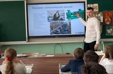 С интересными специальностями, химической промышленности, познакомил их Гафуров Тагир, выпускник школы 10, который в настоящее время работает на предприятии ТАНЕКО.