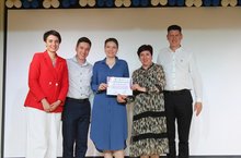 Поздравляем команду школы №10, занявшую 3 место в брейн-ринге по семьеведению на тему "Мой взгляд на современную семью". Всего принимали участие 5 команд. В составе нашей команды участвовали ученики 10 класса: Вдовинова Дарья, Назырова Эльвира, Васильев Денис, Мурзакаев Тимур, также мама Ильясова Яна Сергеевна, руководитель Валиева Елена Анатольевна. Игра состоялась в ЗАГСе, проходила в теплой дружеской атмосфере, ребята представили визитку, отвечали на вопросы, защитили проект, о секретах семейного счастья поделилась мама Яна Сергеевна. С музыкальным номером выступила Ильясова Альмира, ученица 1класса. Все команды были награждены дипломами и в качестве приза получили сладкий пирог и памятные книги о культуре Татарстана.