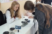 В течение дня работали экспериментальные станции, где учащиеся школы могли попробовать измерить плотность металлического тела или найти "таинственную" силу давления воды в сосуде.