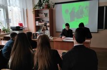 Учащиеся 10а класса провели тематические пятиминутки на тему: «Герои-земляки» для учащихся 5 классов