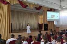 Сегодня была проведена лекция для 5-х кл. на тему: "Здоровье уха и слуха". Провела Чуданова Юлия Сергеевна, врач по медицинской профилактике, представитель ГАУЗ "Центр общественного здоровья и медицинской профилактики". С ней была медсестра Тимерова Айсылу Зуфаровна.