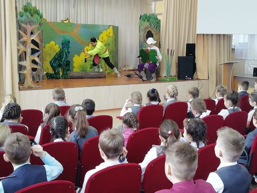 - 5 нче март көнне мәктәбебездә Туфан Миңнуллин исемендәге татар дәүләт театры кунакта булды. 1-8 нче сыйныф укучылары “Шомбай маҗаралары” әкиятен бик яратып карадылар. Театр артистларының профессиональ уйнаулары, костюмнарның матурлыгы барлык тамашачыларның да күңеленә хуш килде. Спектакль бик кызыклы һәм гыйбрәтле булды. Балалар табигатьне яратырга һәм сакларга кирәк дигән темага тагын бер кат дәрес алдылар. Театр артистларына зур рәхмәтебезне белдерәбез!