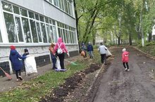 В рамках городского санитарно-экологического двухмесячника родители и учащиеся школы проводят уборку прикрепленной территории.