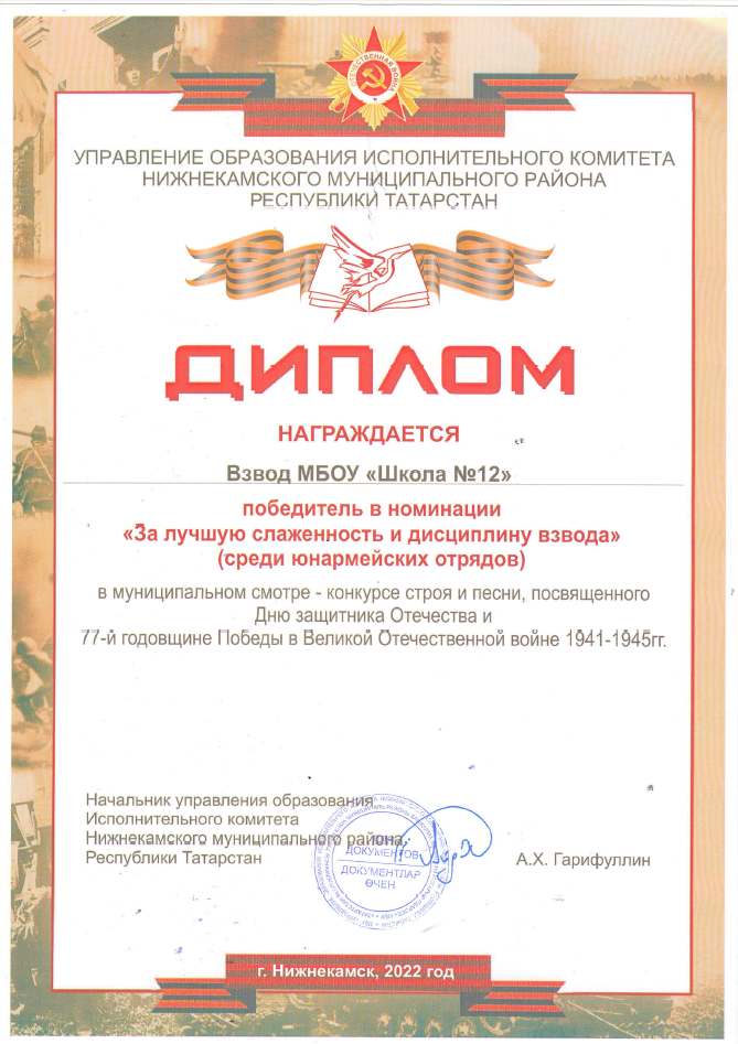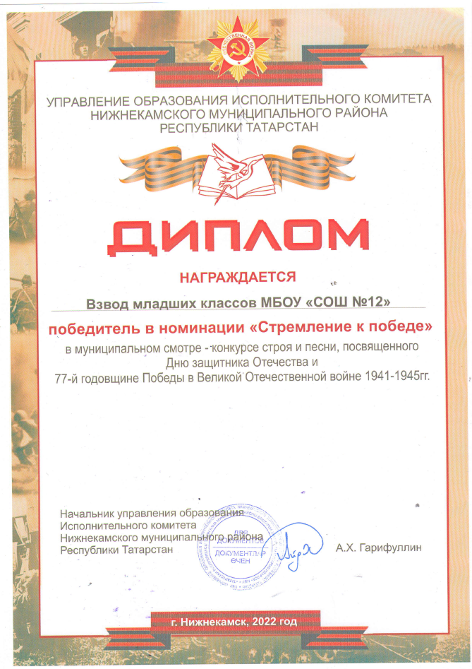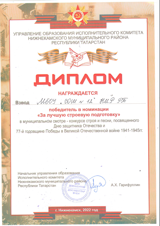 Наш вклад в итоги муниципального смотра-конкурса строя и песни, посвящённого Дню защитника Отечества и 77-й годовщине Победы в Великой Отечественной войне 1941-1945 гг.:
