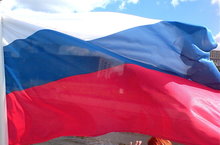 В тот же день во время траурного митинга по погибшим митингующие вынесли огромное бело-сине-красное полотнище.