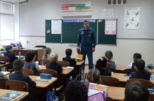 Перед зимними каникулами инспектор отдела надзорной деятельности Айрат Наилевич провел беседу с учащимися на тему "Как вести себя во время пожара".
