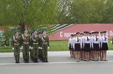 Лучшие взводы учащихся общеобразовательных учреждений приняли участие в торжественном шествии в честь Дня Победы 9 мая на городской площади. Взводы юношей и девушек нашей школы тоже прошагали в парадном расчете.Командиры взводов - ученики 11а класса Каплун Алексей и Мурадимова Диана. 09.05.2016