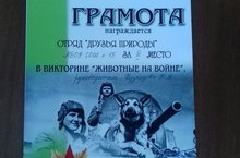 На базе детского эколого-биологического центра в рамках героико-патриотического месячника прошла викторина "Животные на войне". В викторине приняли участие все школы города. Нашу школу представляла команда учащихся 5В класса, которая заняла 3 место! Поздравляем ребят и руководителя Кузнецову Ю. Н. с победой и желаем дальнейших успехов!