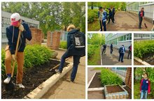 Наши ребята из ТОШ трудолюбивые и ответственные, усердно благоустраивают территорию своей родной школы!