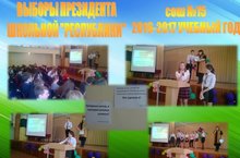 Традиционные выборы президента школьной республики очень важное и ответственное мероприятие, только самые смелые люди нашей школы отважились выразить свою точку зрения, высказать свое мнение и показать себя, а именно: Газизова Ландыш 8а класс, Сафиуллин Марсель 8в класс, Курочкина Татьяна 9в класс, Снопова Екатерина 9в класс, Вагапова Регина 9б класс, Ахтямова Айгуль 10а класс, Вафина Диана 11а класс Одновременно со школьными выборами, так же проходят выборы в городской совет старшеклассников и городской совет средних классов.