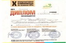 Ученица 10а класса Озерова Арина стала обладателем диплома I степени и серебряной медали за абсолютное первенство в очном финальном этапе по предмету «Английский язык» X международной олимпиады по основам наук высшей лиги, а также диплома II степени Международного конкурса «Английский в школе», который организуется Британской Международной Школой. Молодец Арина! Поздравляем с победой тебя и твоего учителя Романову Светлану Геннадьевну!