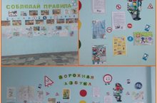 В рамках смотра-конкурса информационных уголков по безопасности дорожного движения, отряд ЮИД, президент школы и совет старшеклассников оформили выставку рисунков, а также разместили памятки, загадки, ребусы плакаты и правила по правилам дорожного движения на первом этаже младшего блока.