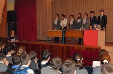 16 декабря перед учащимися 6-ых классов выступили ученики 8А класса и познакомили детей с физическими законами через показ и демонстрацию механических игрушек. Выступление понравилось и очень заинтересовало 6-классников.