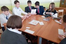 7 нче сыйныф укучылары белән рус теленә багышланган уен-дәрес узды. Укучылар тема буенча башваткычлар чиште, табышмакларга җавап эзләде, шигырьләр сөйләде