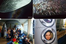 Сегодня в лагерь приехал мобильный планетарий, где дети внутри купола погрузились в мир звёзд и планет.