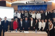 9-11 сыйныф укучылары өчен мәктәпнең актлар залында Татарстан Республикасы сәнәгать һәм сәүдә министры урынбасары Карпов Родион Михайлович, Түбән Кама муниципаль районы Башкарма комитеты җитәкчесенең беренче урынбасары Мөхәммәтҗанов Илназ Илдар улы белән очрашу оештырылды.