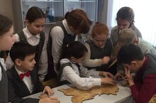 Учащиеся 4-х классов посетили школьный историко -краеведческий музей и приняли участие в квесте: «Мой родной Татарстан» Дети проявили большую активность в игре и показали свои знания. По ходу игры, выполнив задание получали букву. Собрав слово, нашли спрятанный сладкий подарок. Итогом стал собранный пазл - Республика Татарстан.