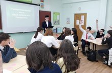 9 нчы сыйныфлар өчен "Горурланам синең белән, Татарстан" исемле викторина узды. Укучыларның туган ягыбыз тарихын белү дәрәҗәсе уен аша күренде. Рус милләтеннән булган укучылар да биремнәргә татар телендә җавап бирергә тырышты. 9Б һәм 9В сыйныфлары арасында ярыш дусларча тигез исәп белән тәмамланды