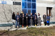 В рамках экологического месячника отряд юнармейцев во главе с классным руководителем Ахметовой М. И. провели субботник возле мемориальный доски Героя Советского союза Кайманова Н. Ф.