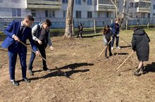 В рамках проекта ЭКОВЕСНА учащиеся 10 класса организовали уборку пришкольной территории, назвав её "Весна идёт!! Весне дорогу!!!"