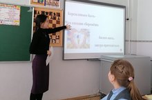 В рамках недели начальной школы во 2 В классе прошёл открытый урок по русскому языку. На уроке приходили гости-сказочные герои; велась работа с интерактивной доской. Красочная презентация помогла более доступно объяснить новый материал.