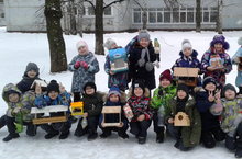 Ребята 1 В класса повесили на пришкольном дворе кормушки, изготовленные своими руками, накормили птиц зерном, семечками.