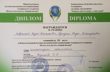 Поздравляем учащихся 8 а класса Лаврентьева А.,Буторина И. и их руководителя Харисову Е.А. с очередной призовой позицией -диплом III степени на международной конференции "Наука и культура-новый взгляд". Молодец Елена Анатольевна!